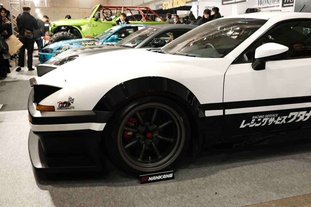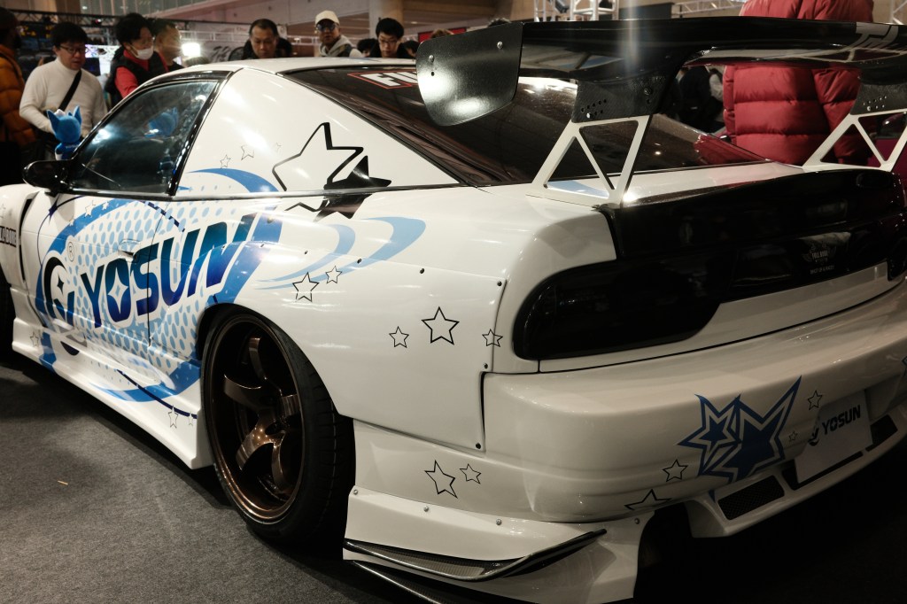 Yosun 180sx with what appears to be a sizeable gap in the front bumper. Maybe they could use more hardware to bring the bumper up like the English Tune brackets. Am I being too picky? Looks like it is rocking a Garage Mak kit.